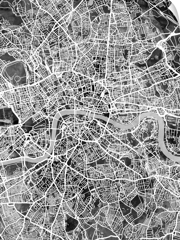 <p>A watercolor street map of London, England</p>
