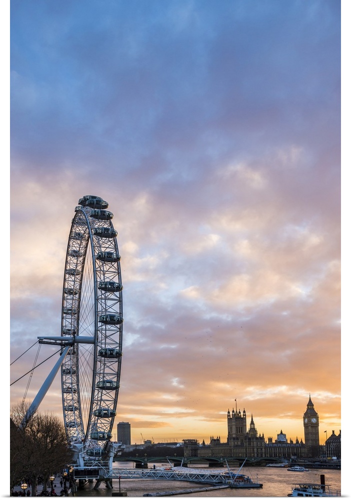 <p>London Eye (Millennium Wheel) at sunset, London Borough of Lambeth, England, United Kingdom, Europe</p>
