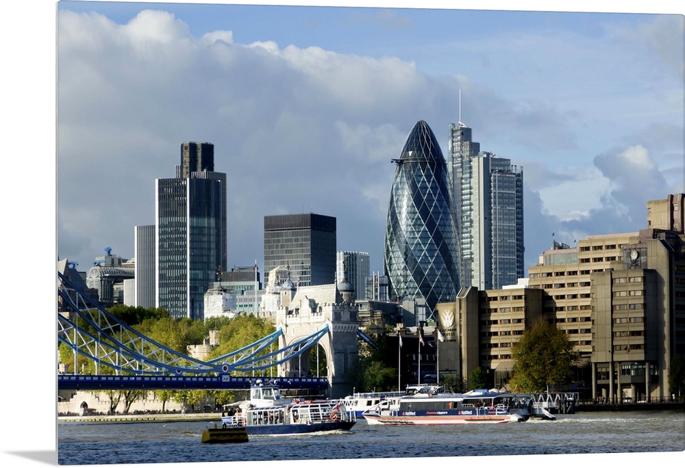 <p>Cityscape of City of London financial center acts as a backdrop for River Thames. This 2010 City skyline shows newly completed Heron Tower.</p>