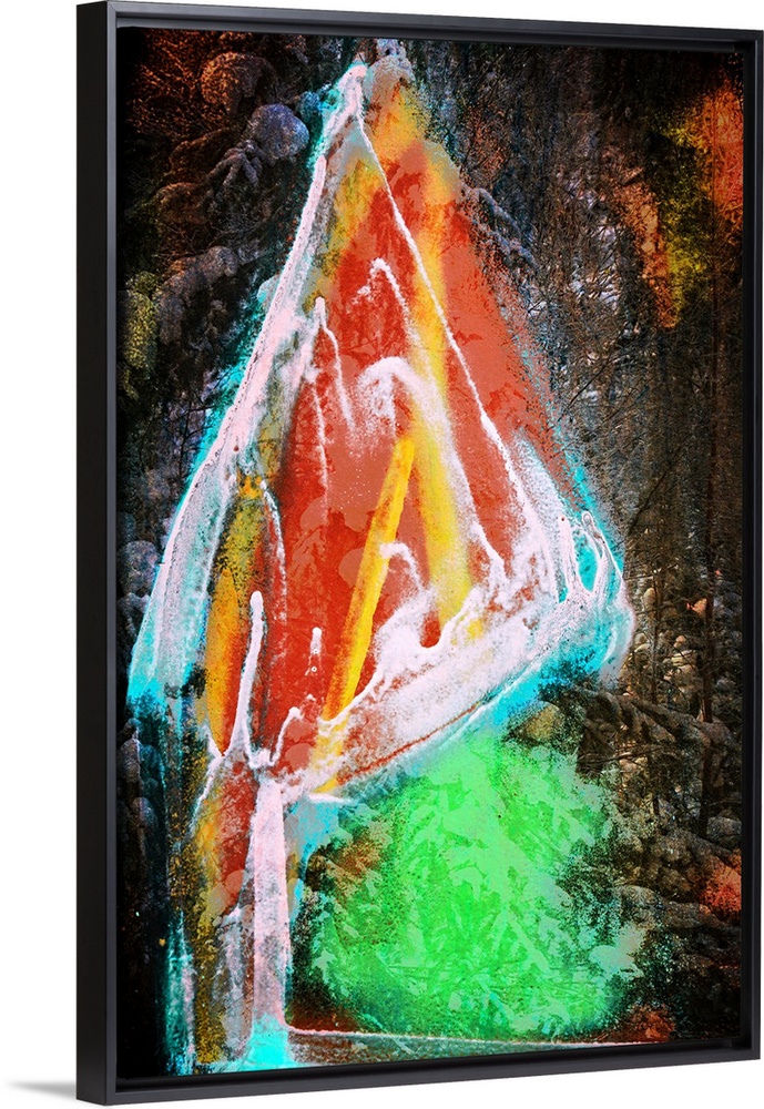 <p>Photograph of rocky woods in the background with an overlay of brightly colored paint.</p>