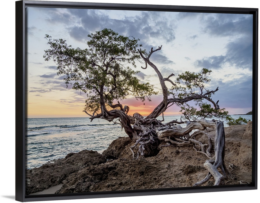 <p>Lone Tree by the Jack Sprat Beach at sunset, Treasure Beach, Saint Elizabeth Parish, Jamaica, West Indies, Caribbean, Central America</p>