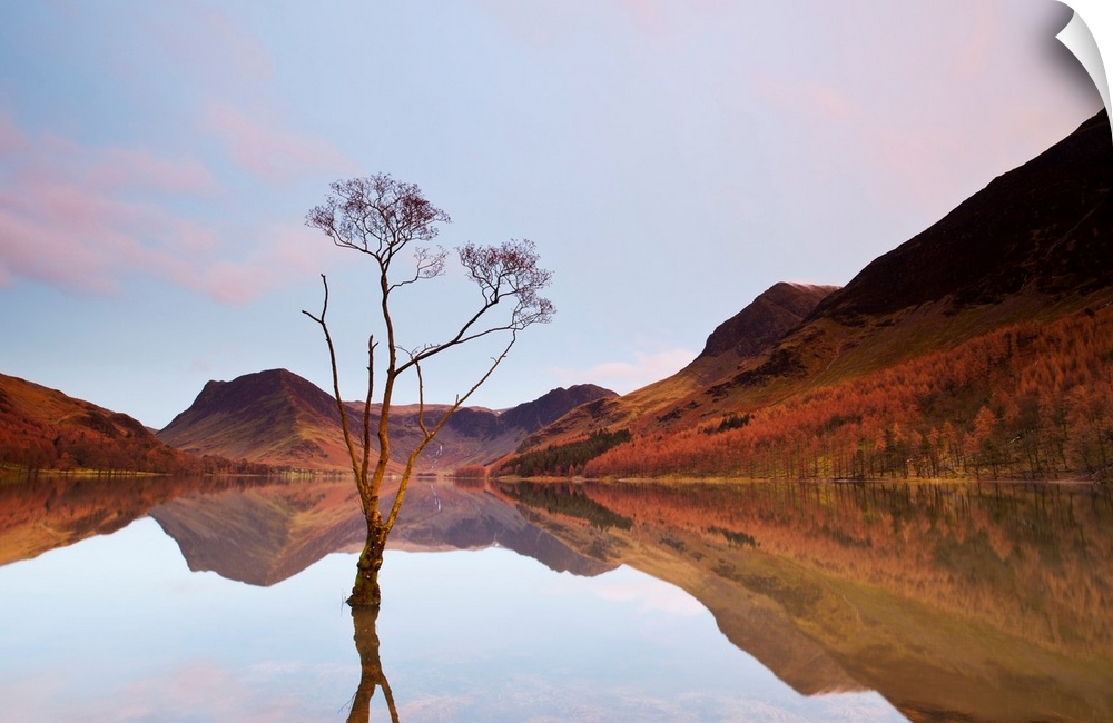 <p>Lone Tree in Lake, Lake Buttermere, Lake District, England</p>