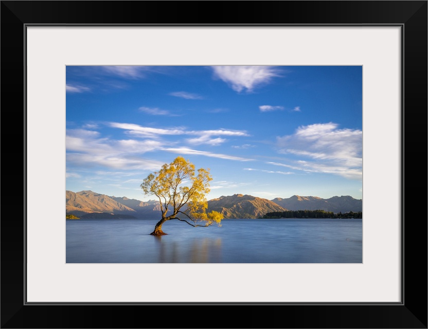 <p>Lone tree in Roys Bay on Wanaka Lake against sky during sunrise, Wanaka, Queenstown-lakes District, Otago Region, South Island, New Zealand</p>