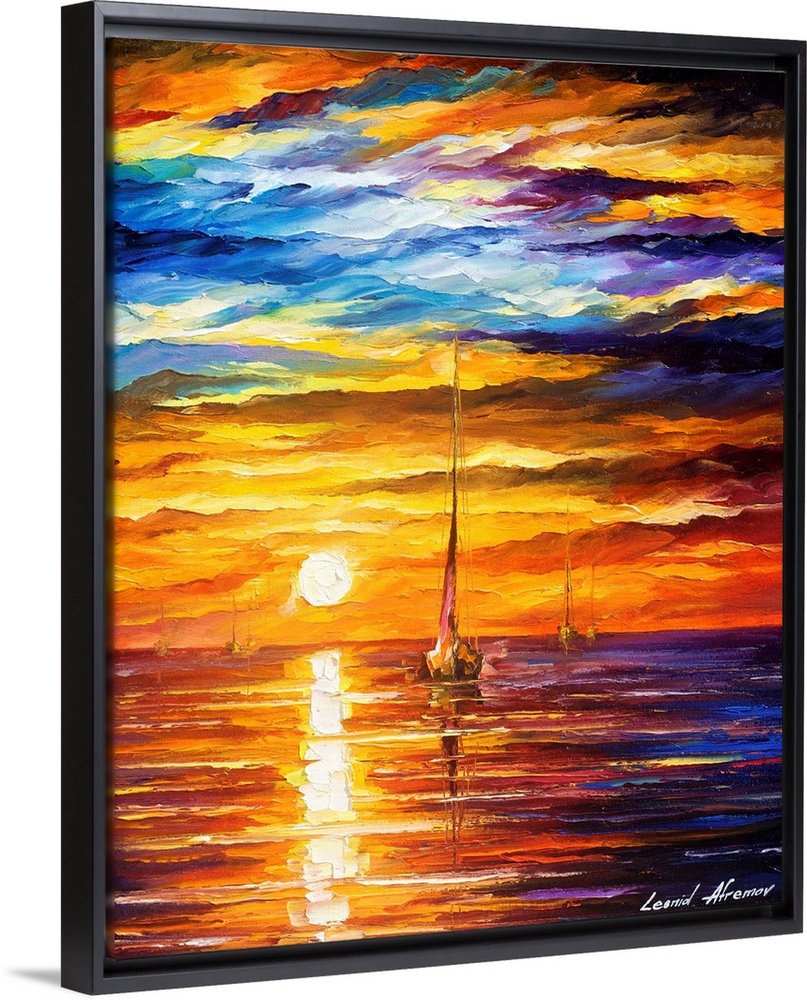 <p>Leonid Afremov was an extraordinarily prolific contemporary artist with a style all his own. His palette knife paintings depict people, cities, seascapes, gardens and animals in bold colors. Afremov’s love for brilliant colors may be cathartic, an affirmation that he had risen above the struggles and drudgery that plagued him early in his career in Russia and Israel. Afremov’s intricate and timeless paintings make spectacular canvas prints that will add a touch of sophistication and charm to any room.</p>