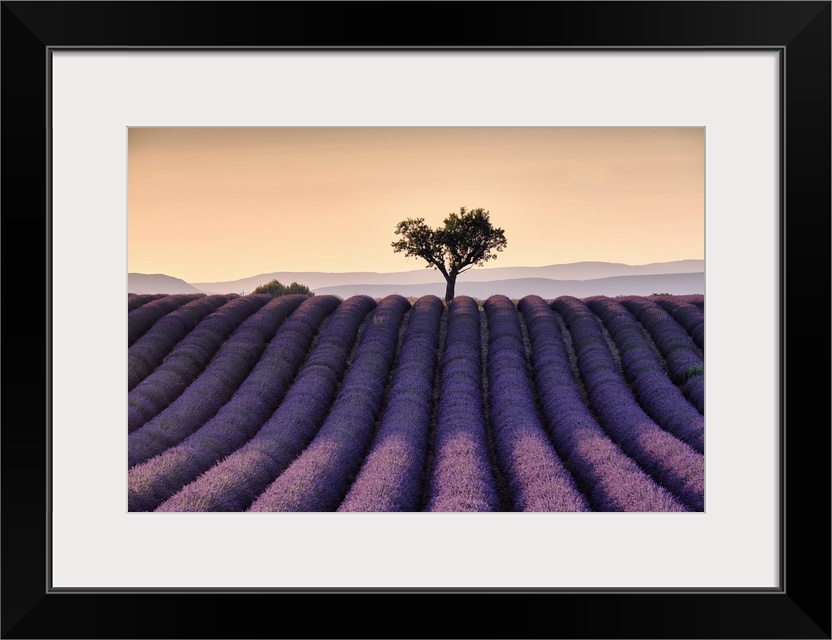 <p>Lonely tree on top of a lavender field at sunset, Valensole, Provence, France, Europe</p>