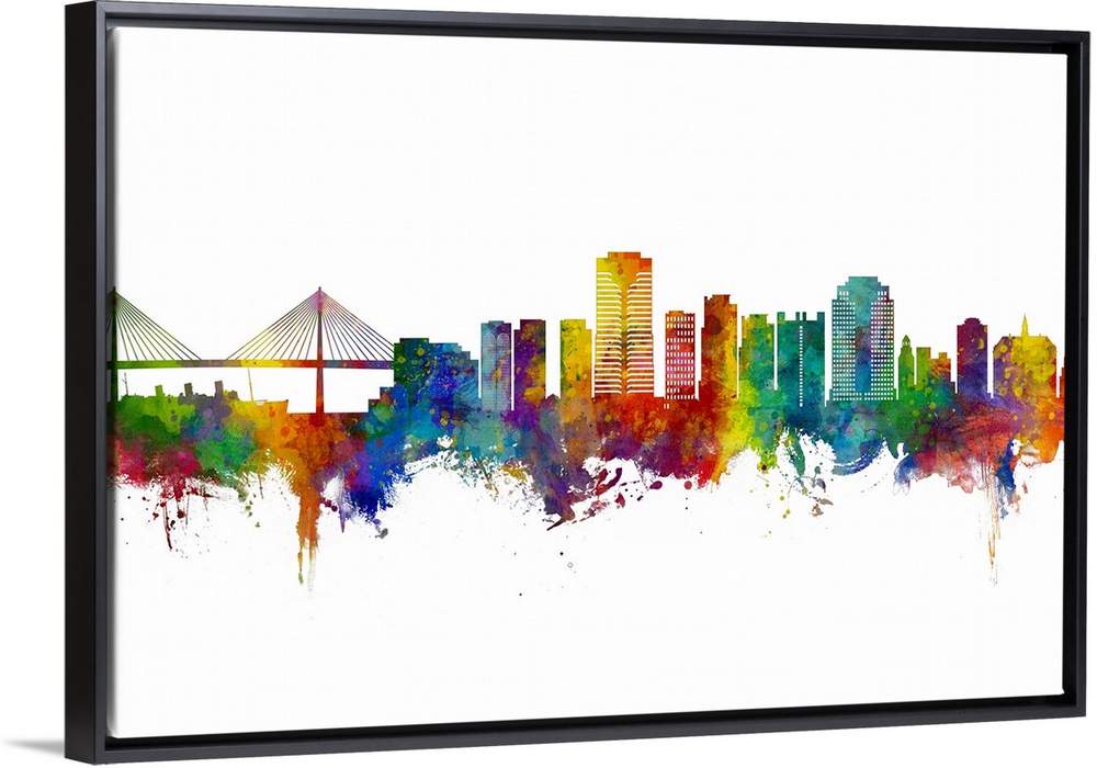 <p>Watercolor art print of the skyline of Long Beach, California</p>