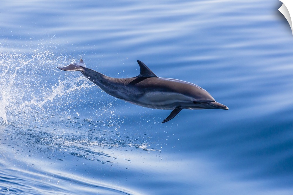 <p>Long-beaked common dolphin (Delphinus capensis) leaping near Isla Santa Catalina, Baja California Sur, Mexico, North America</p>