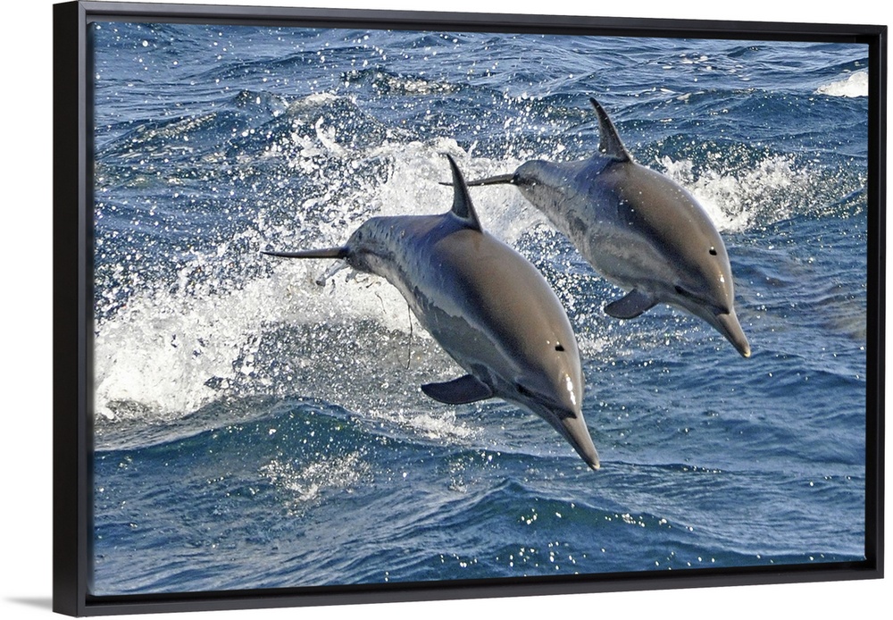 <p>These are Long-beaked Common Dolphins (Delphinus capensis), a highly energetic and acrobatic species that likes to bow ride on boats.</p>