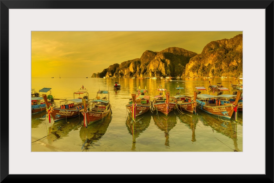 <p>Longtail boats at sunrise, Ko Phi Khi Don Island, Krabi, Thailand, Southeast Asia, Asia</p>