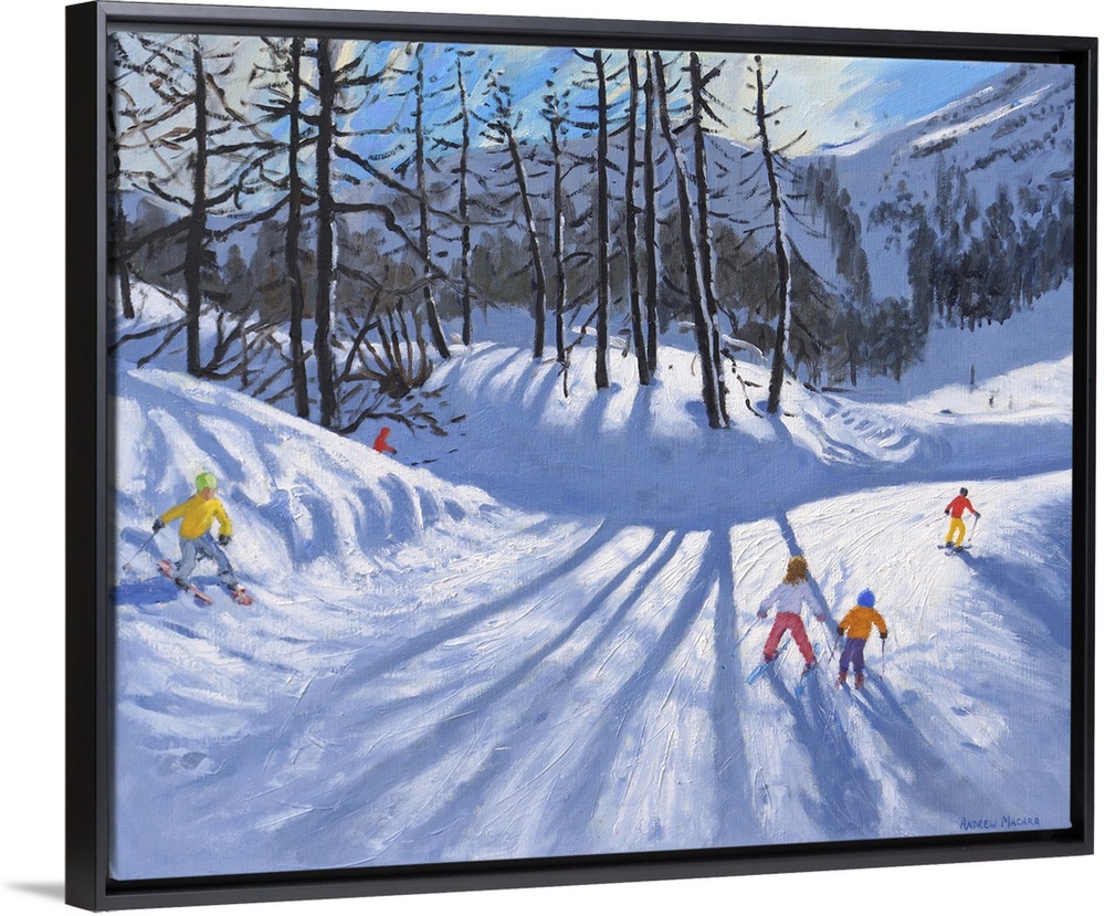 <p>Long tree shadows and skiers, Tignes, 2016-2019. Originally oil on canvas.</p>