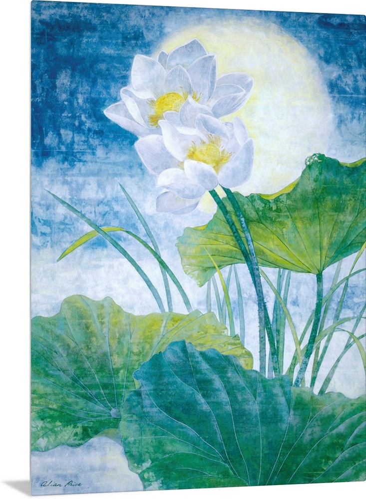 Art Asian Art Plants and Flowers Blue Wall Art Contemporary Art Plants and Flowers Florals Water Lily Painting Ailian Price
