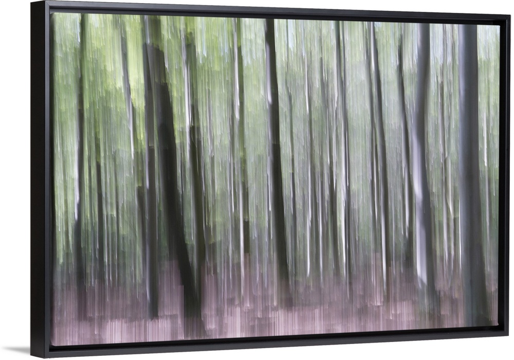 <p>Artistically blurred photo. Old forest Dover Plantage in North Jutland, Denmark, on a sunny day. The beech trees long for the light of the sun.</p>