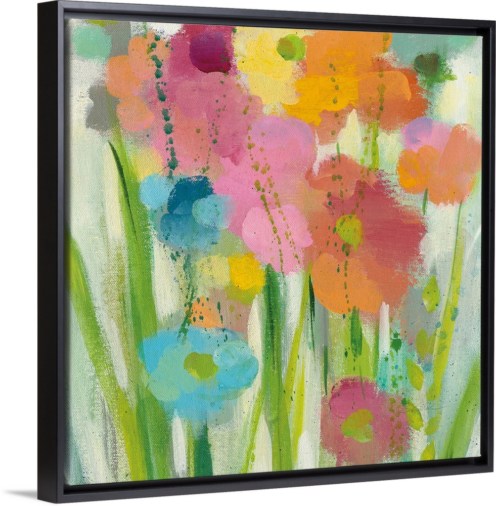<p>Decorative artwork of whimsical abstract florals with paint splatter throughout.</p>