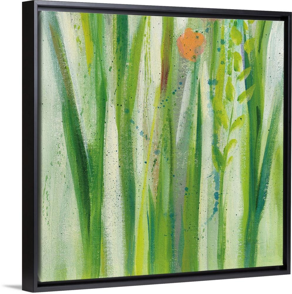 <p>Decorative artwork of whimsical abstract stems of flowers with paint splatter throughout.</p>