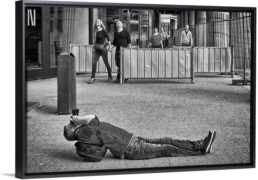 <p>Photographer laying on his back in the street to get a good angle, Rotterdam, Netherlands.</p>