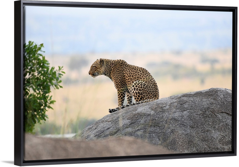 <p>A leopard on a rock watches intently for a next meal. Tanzania, Africa.</p>