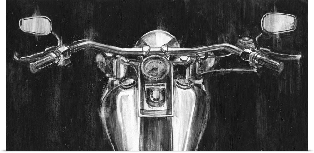 <p>Contemporary painting of a motorcycle's handlebars.</p>