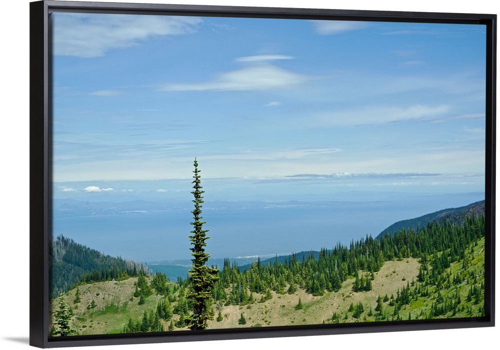 <p>USA, Washington State, Olympic Peninsula, at the Hurrican Ridge Visitors Center: looking North toward Canada across the Juan de Fuca Strait</p>