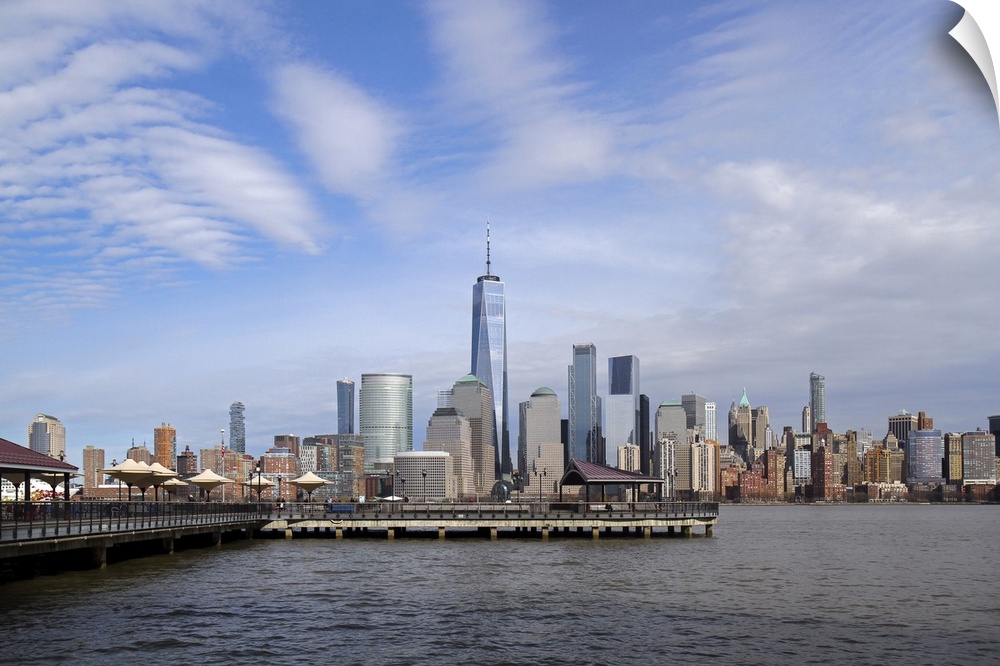 <p>USA, North America, New York. Looking Towards J Owen Grundy Park In Jersey City, New Jersey, With One World Trade Center And Manhattan Buildings In The Background.</p>