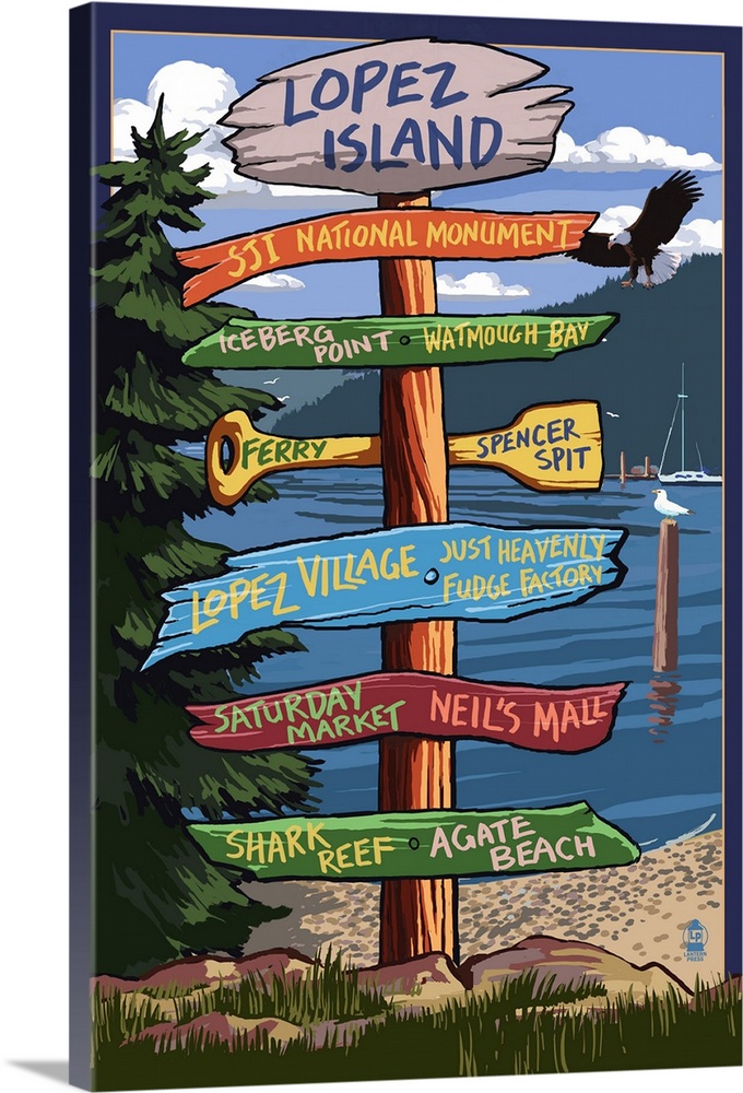 Lopez Island, Washington - Signpost Destinations: Retro Travel Poster