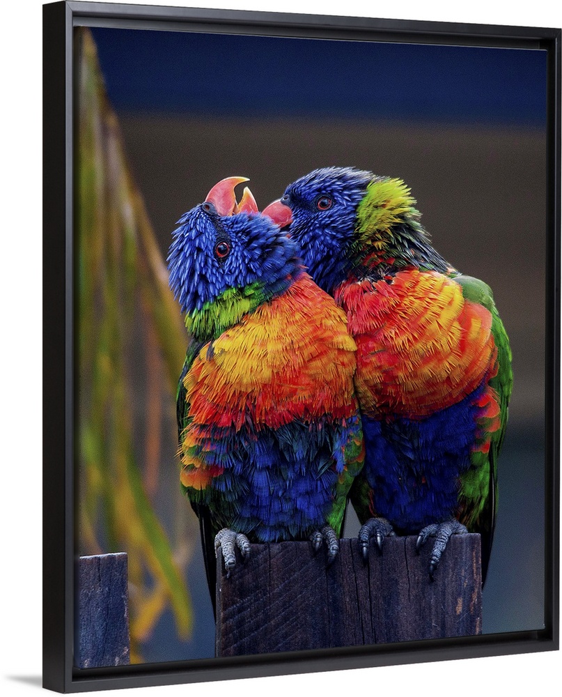 <p>Two colorful Lorikeets preening each other, a sign of affection.</p>
