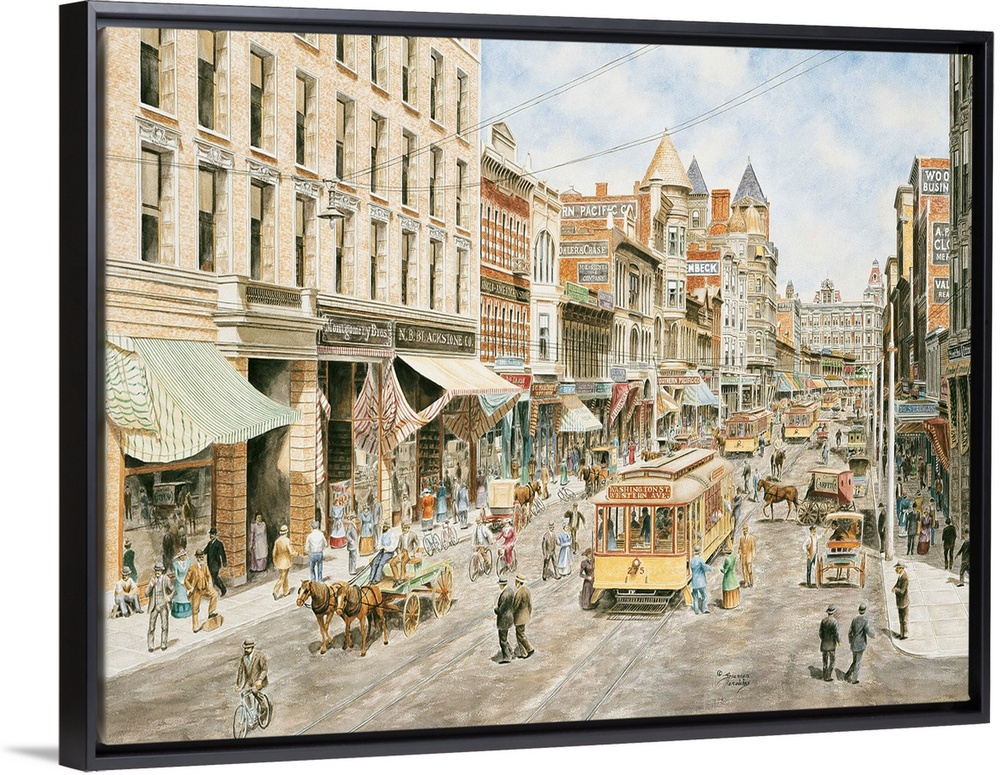 <p>Contemporary painting of a bustling city street.</p>