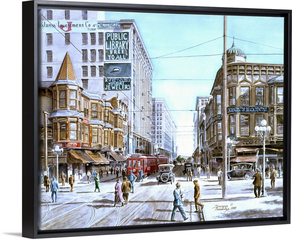 <p>Contemporary painting of a bustling city street.</p>