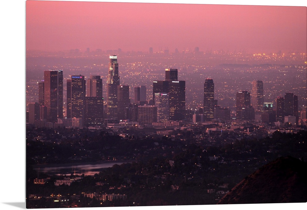 <p>Colorful predawn light falls on downtown Los Angeles. Silver Lake visible in foreground.</p>