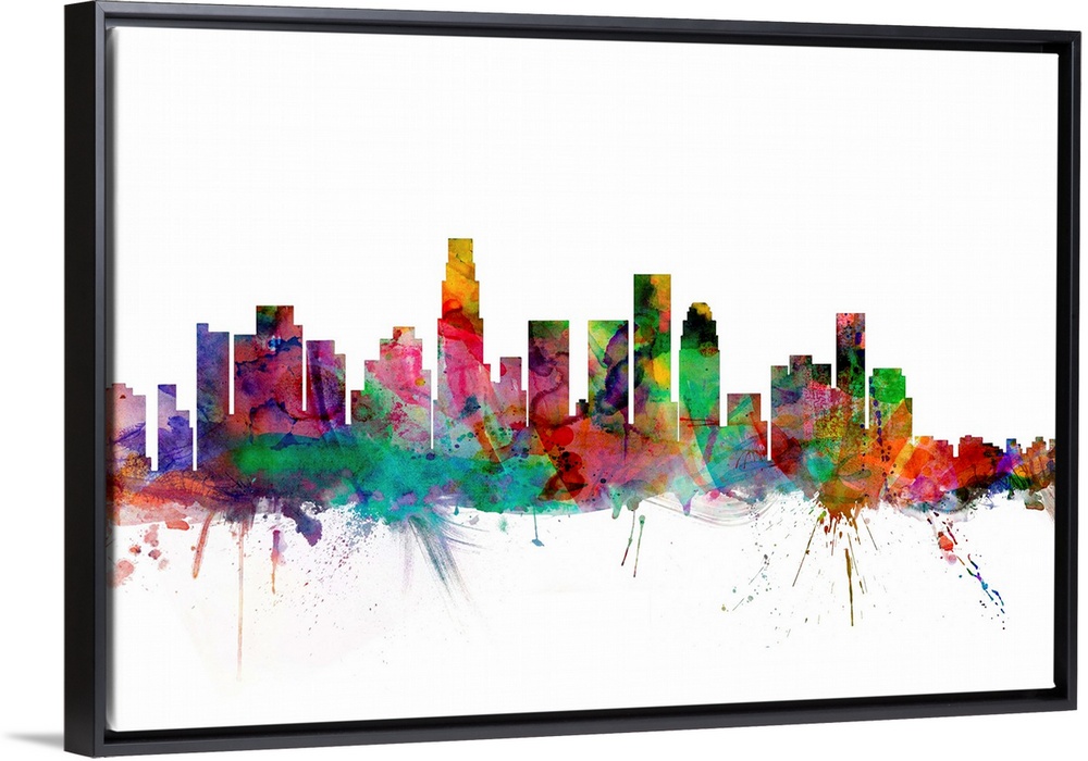 <p>Watercolor artwork of the Los Angeles skyline against a white background.</p>