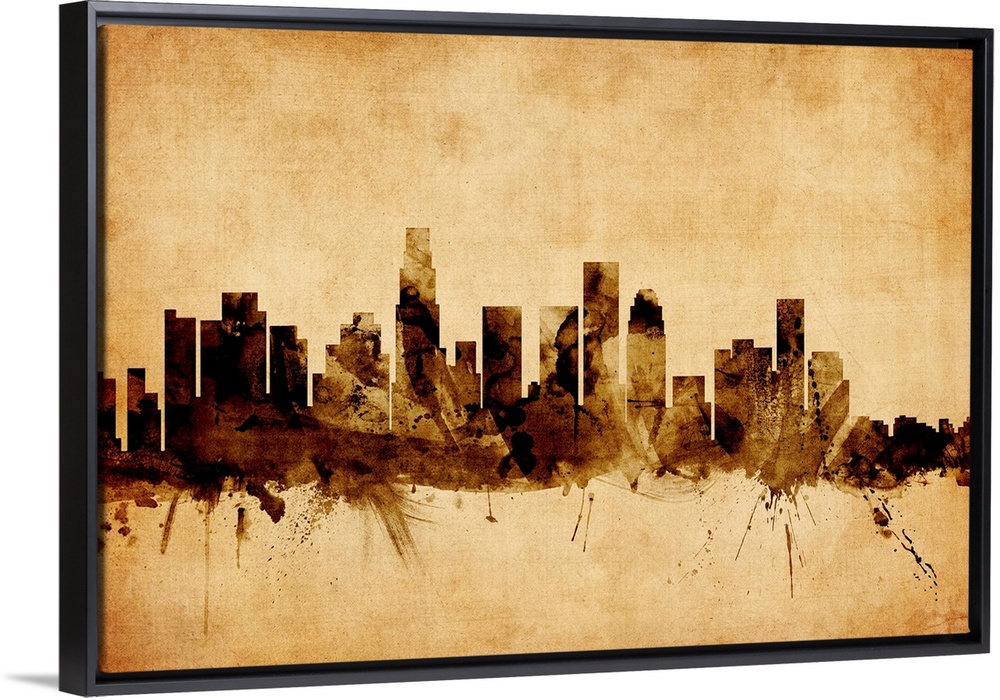 <p>Contemporary artwork of the Los Angeles city skyline in a vintage distressed look.</p>