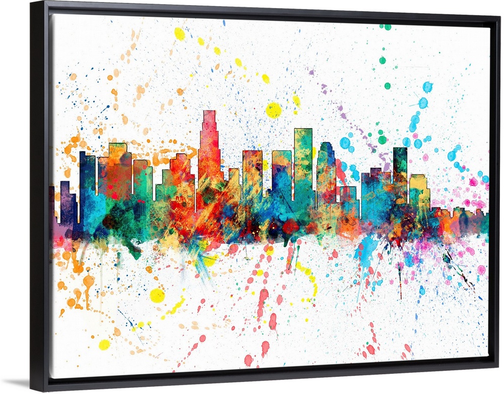 <p>Wild and vibrant paint splatter silhouette of the Los Angeles skyline.</p>