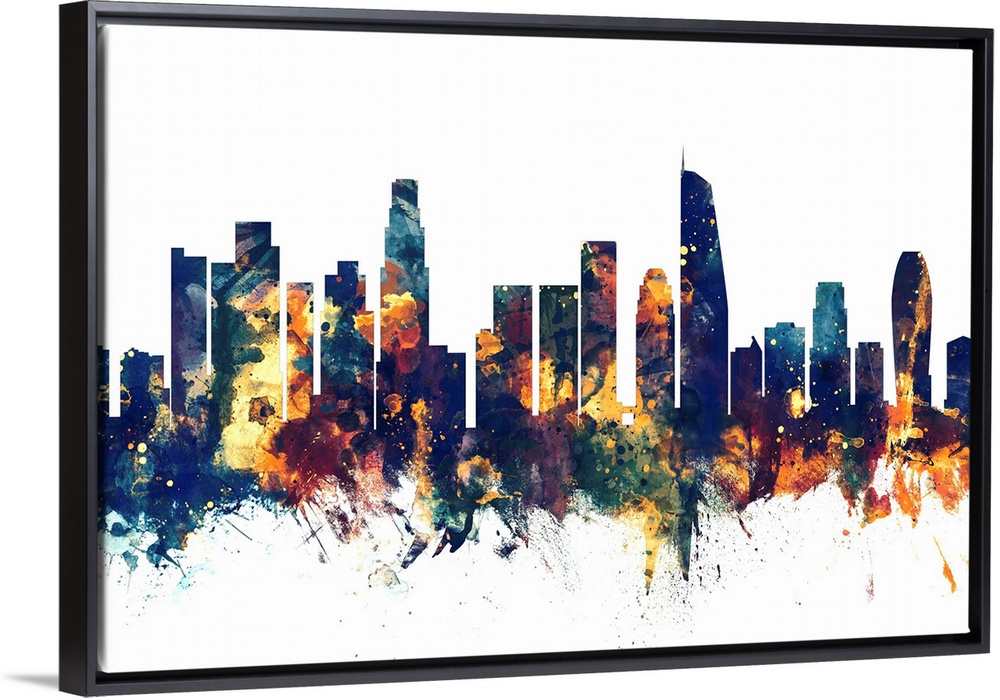 <p>Watercolor art print of the skyline of Los Angeles, California, United States</p>