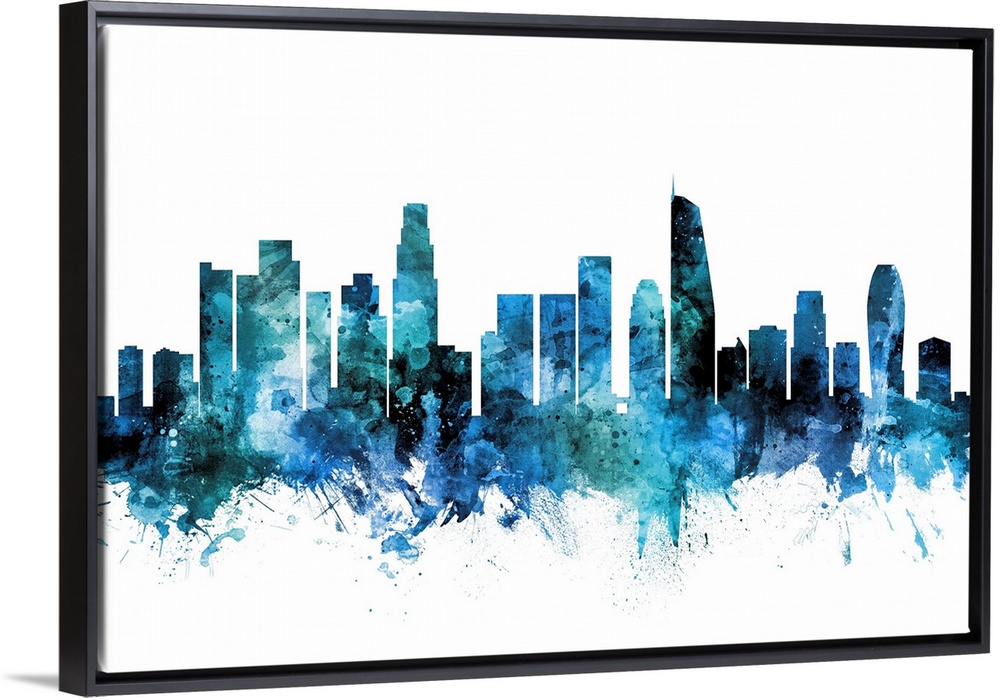 <p>Watercolor art print of the skyline of Los Angeles, California, United States</p>