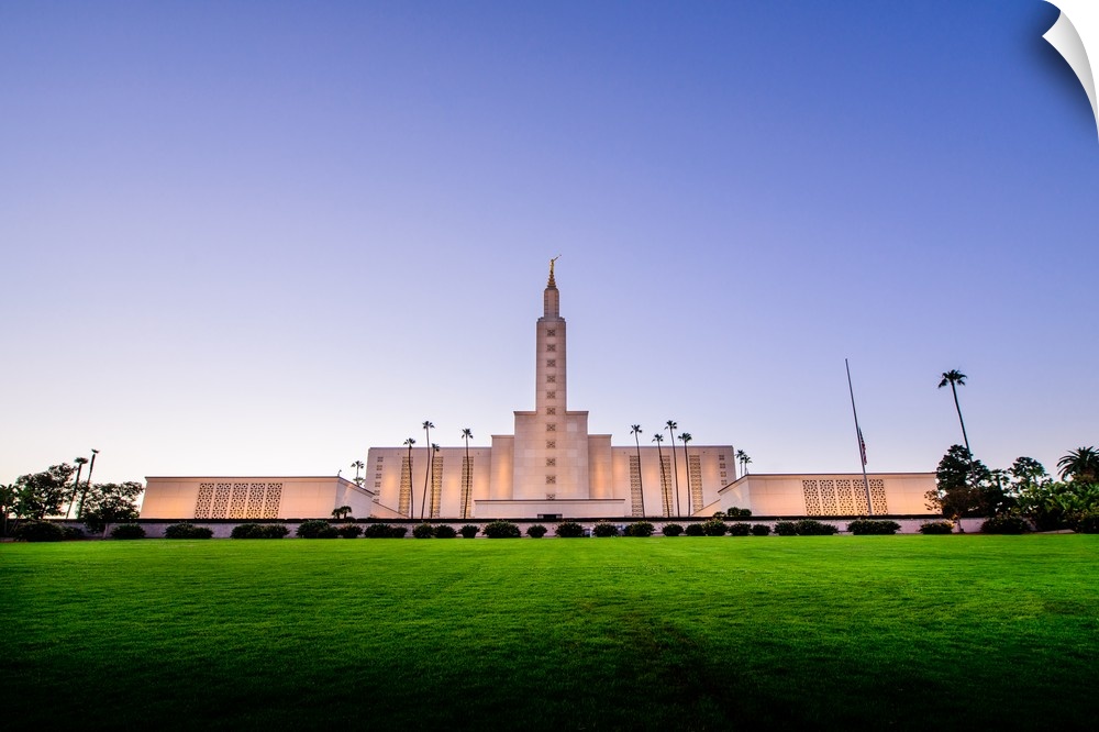 <p>The Los Angeles California Temple was dedicated in September 1951 and March 1956 by David O. McKay. The temple itself is more than 200 feet tall and faces Santa Monica Boulevard. When it was constructed, it was the largest temple in the Church. Since then, the Salt Lake Temple has taken that title. It is one of only five temples to have the angel Moroni statue holding gold cards.</p>