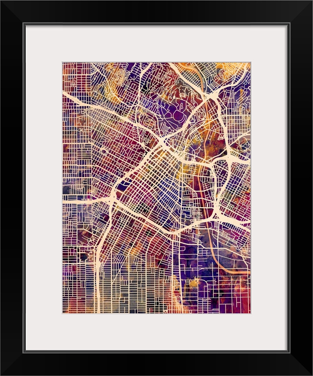 <p>A watercolor street map of Los Angeles, California, United States.</p>