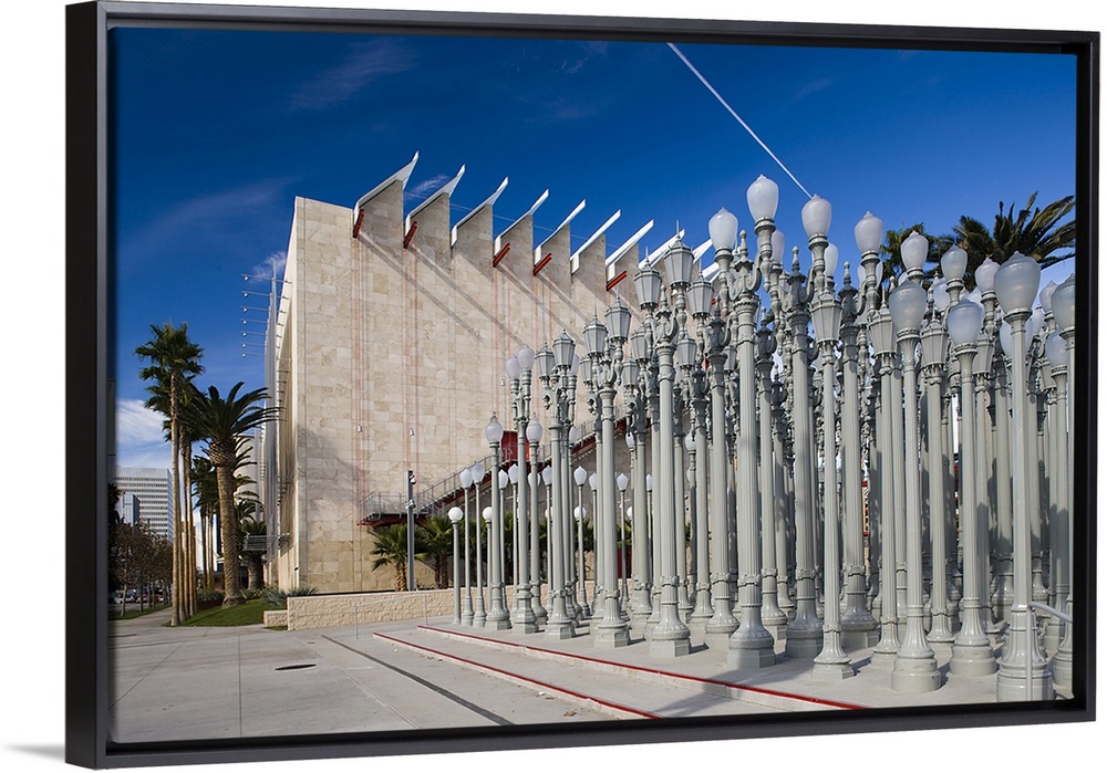<p>USA, California, Los Angeles, Miracle Mile District, Los Angeles County Museum of Art, LACMA, BP entrance with Urban Light by Chris Burden</p>