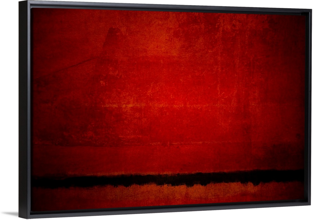 <p>Abstract artwork of a red tones and a black horizon line with a distressed texture throughout.</p>