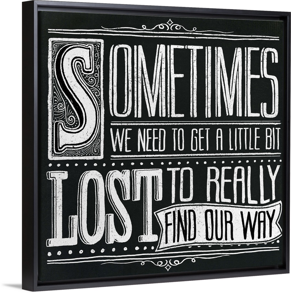 <p>Typography artwork in a chalkboard style reading "Sometimes we need to get a little bit lost to really find our way."</p>