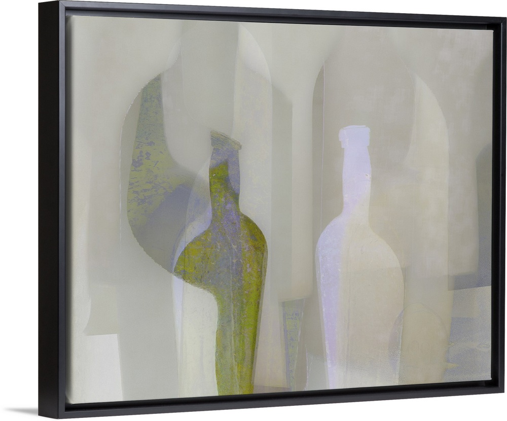 <p>An abstract expressionist image of stylised bottle and ornamental object shapes in neutral and pale green colours with soft curves and lines.</p>