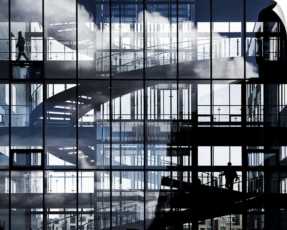 <p>Abstract image created by a spiral staircase and glass windows of a buildling.</p>
