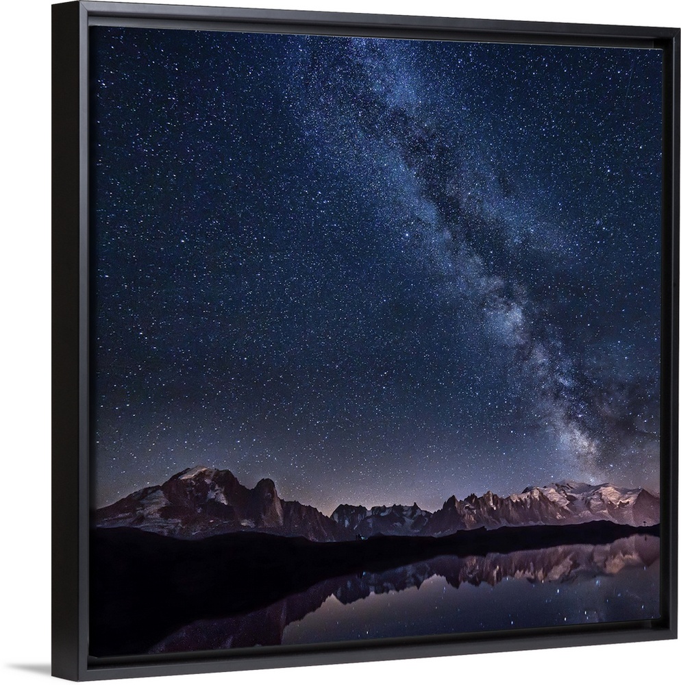 <p>A beautiful view of the Milky Way galaxy and the stars above a mountain range, with a lake reflecting the sky.</p>