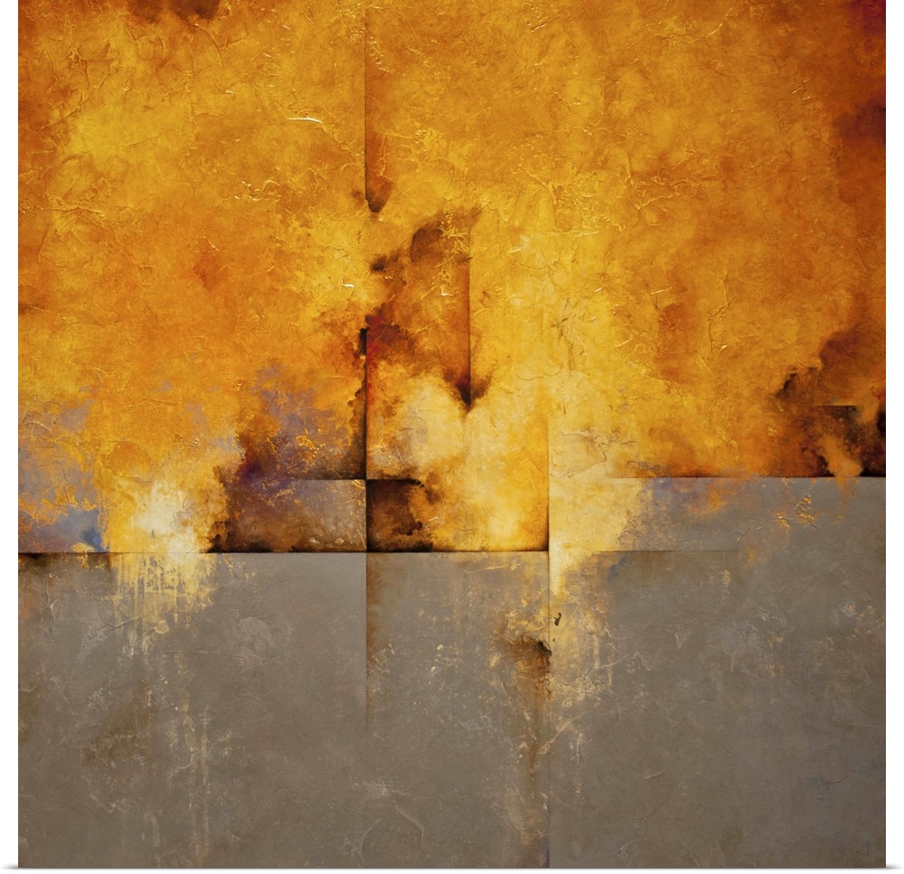 <p>Square contemporary abstract painting in in grey and orange.</p>