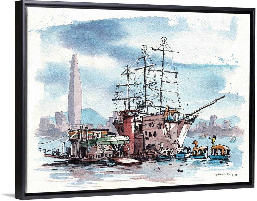 Art Contemporary Art Rivers, Lakes, and Oceans Eleanor Doughty Harbor Painting Korea Seoul Transportation Boat Ship Watercolor