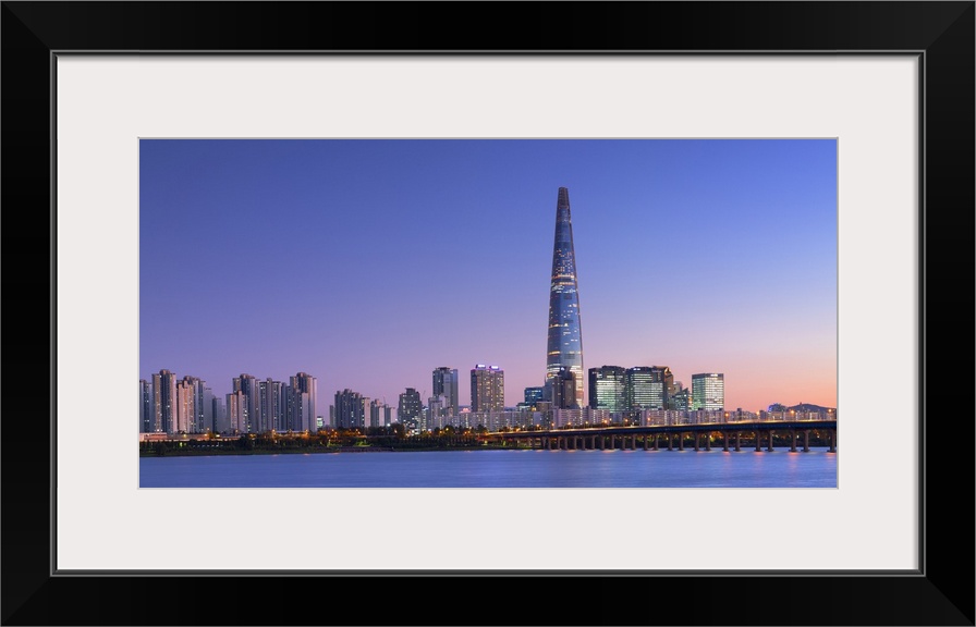 <p>Lotte World Tower and Han River at dusk, Seoul, South Korea</p>