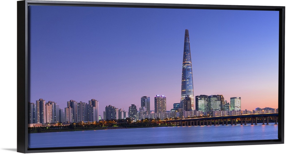 <p>Lotte World Tower and Han River at dusk, Seoul, South Korea</p>