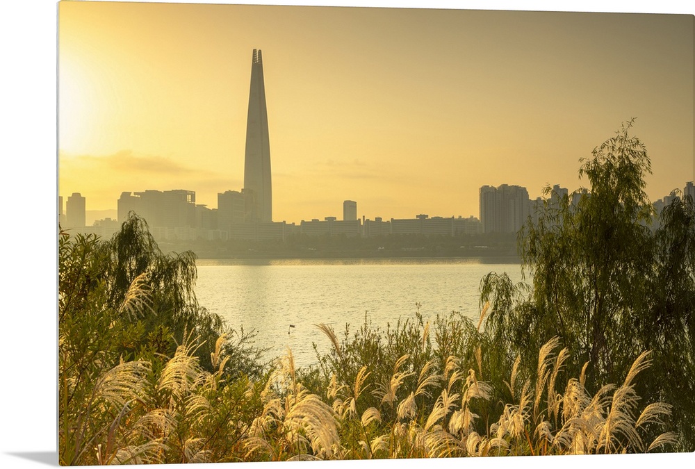 <p>Lotte World Tower and Nam River at sunrise, Seoul, South Korea</p>