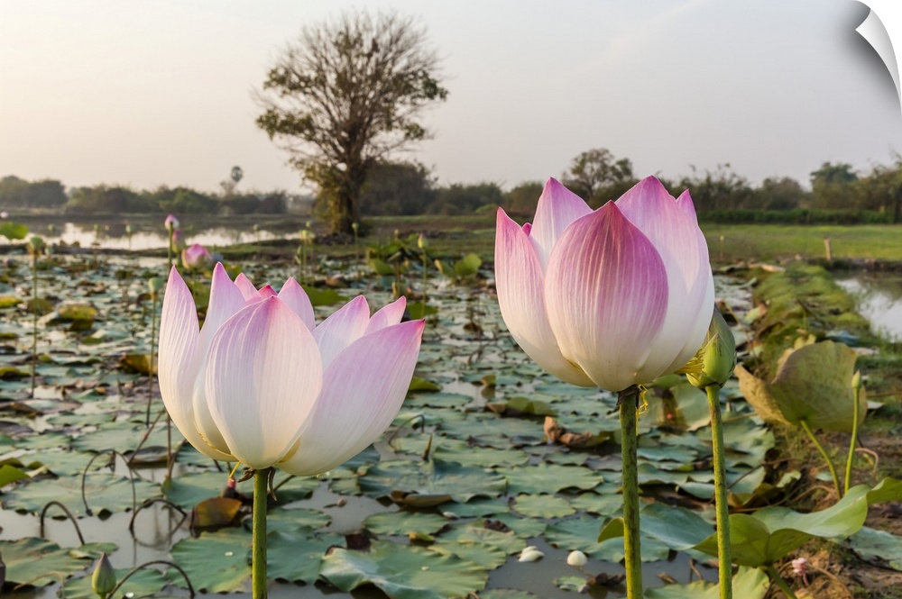 <p>Lotus flower (Nelumbo nucifera), near the village of Kampong Tralach, Cambodia, Indochina, Southeast Asia, Asia</p>