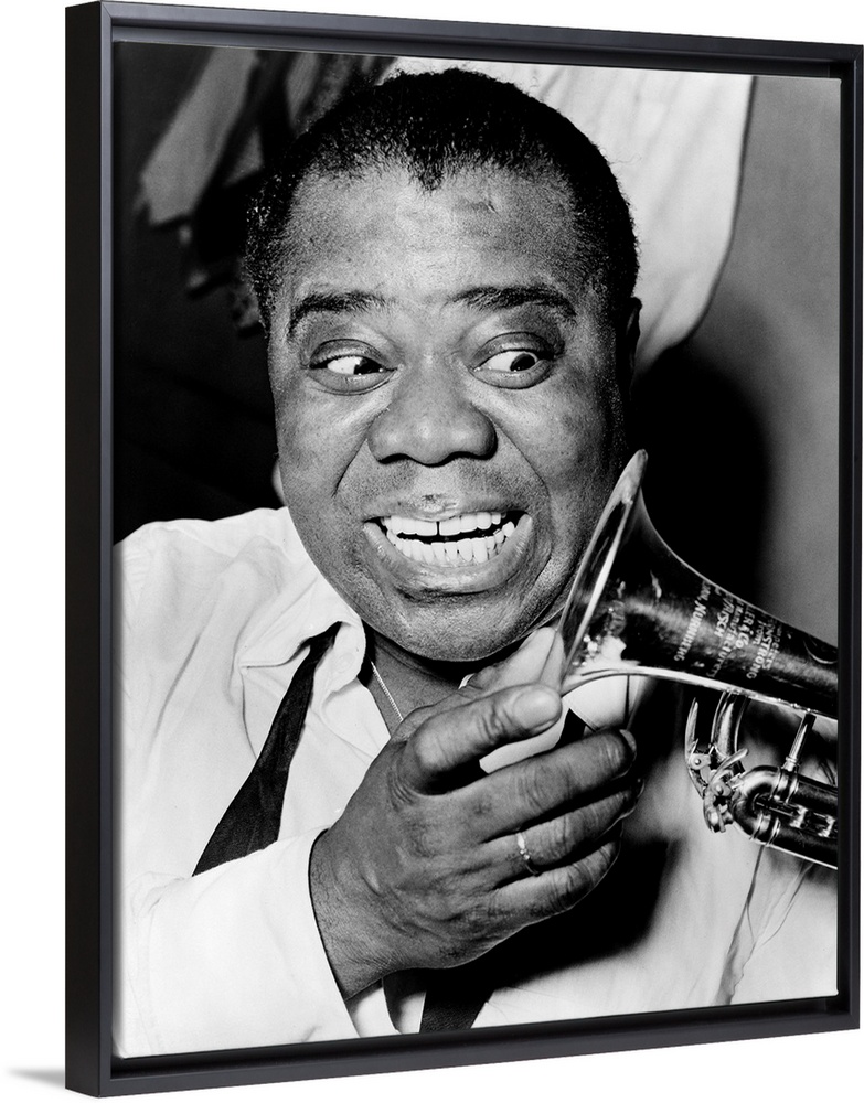 <p>LOUIS ARMSTRONG (1901-1971). American jazz musician. Photograph by Herman Hiller, 1953.</p>