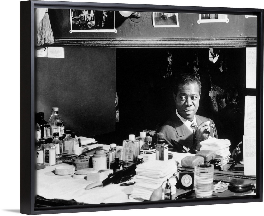 <p>American jazz musician. In the dressing room at Aquarium in New York City. Photograph by William P. Gottlieb, c1946.</p>