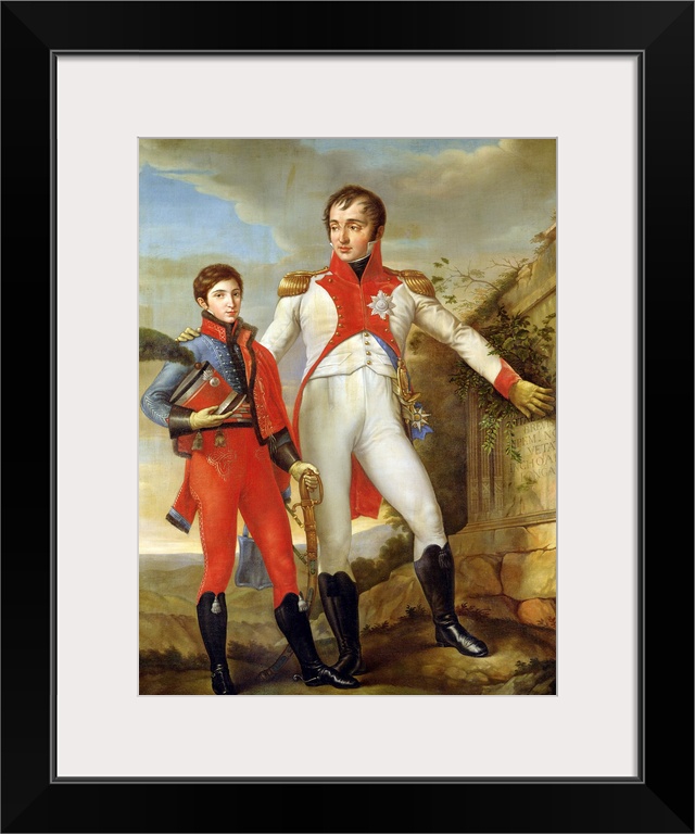 <p>XIR70355 Louis Bonaparte (1778-1846) King of Holland and Louis Napoleon (1804-31) Crown Prince of Holland, c.1806 (oil on canvas) by Wicar, Jean Baptiste Joseph (1762-1834) (after); 200x150 cm; Chateau de Versailles, France; (add. info.: roi et prince royal de Hollande; Louis Bonaparte was the third brother of Napoleon Bonaparte (1769-1821)); French, out of copyright</p>